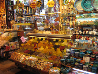 Today we awoke early enough to enjoy the (included) breakfast at the Villa Denise. Breakfast here consists of coffee, lots of bread, jam, three different types of white cheese, black and green olives, honey, butter, coffee, and a roll of salamı (like ham, but nobody in Islamic regions eat pig). After breakfast we went to the Ortaköy Mosque which is right on the Bosphorus. The mosque has a beautiful exterior, has massive minarets, and is decorated with large crystal chandeliers and baroque paintings. As we walked out of the mosque, Jen’s boot zipper broke, so we travelled to her dorm room in Etiler to get her a new pair of shoes. Following that, we took a bus to Beşiktaş to go to the Dolmabahçe Palace, but it was closed (for Mondays), so we walked to Eminönü to check out the famous Spice Bazaar!